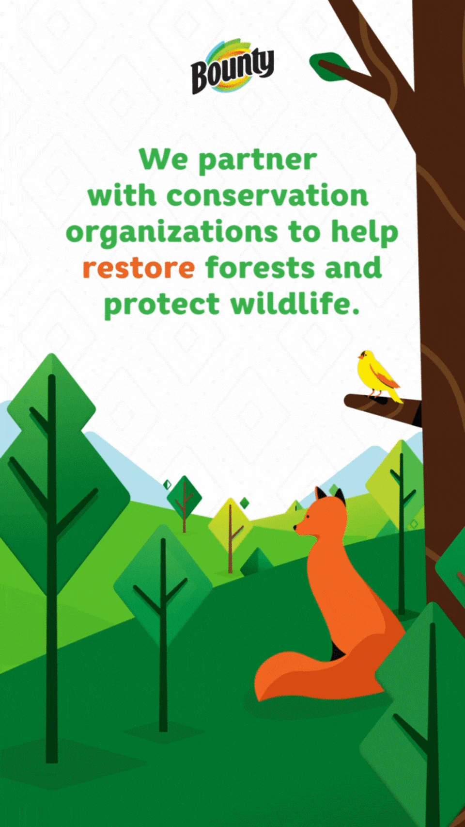 We aimed to make these spots fun, engaging, and informative, showcasing Bounty’s commitment to responsible production and sourcing. Staying true to the forest theme, we used natural landscapes, animals, and environments to bring Bounty’s story to life.